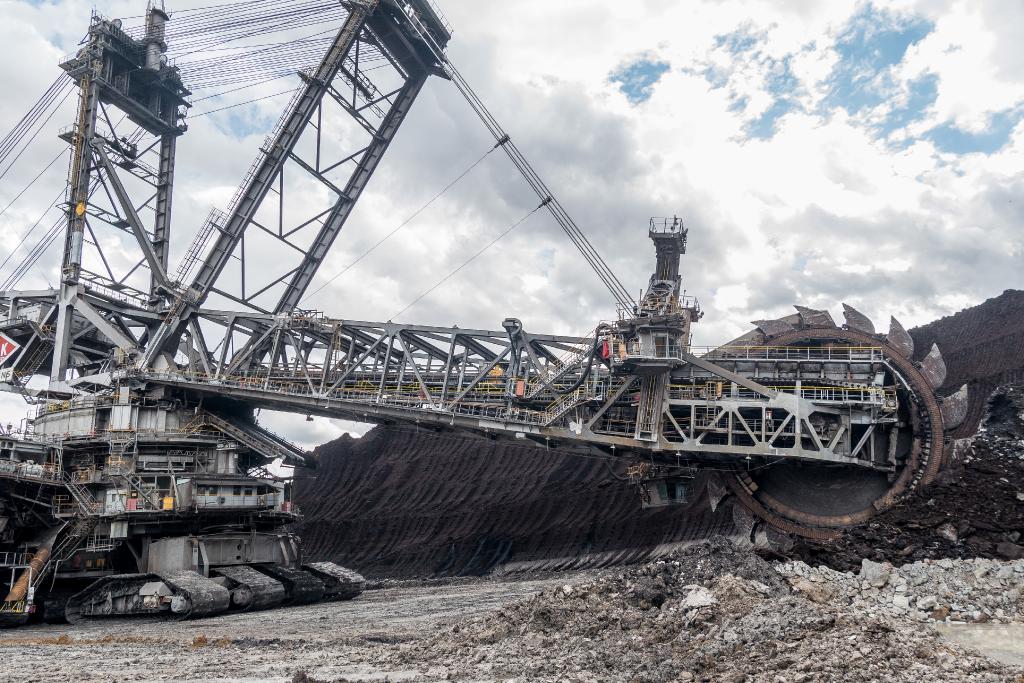 BRAUNKOHLE_SCHAUFELRAD_HAMBACH_JS054 Braunkohle Abraum Tagebau Hambach Rheinisches Braunkohlerevier Bagger Schaufelrad mit 21 Meter Durchmesser Braunkohle Erdreich, geologische Schichten in etwa 250m unter Meeresspiegel , de Tagebau ist Europas groesster, danach soll hier der zweitgroesste See in Deutschland entstehen |
