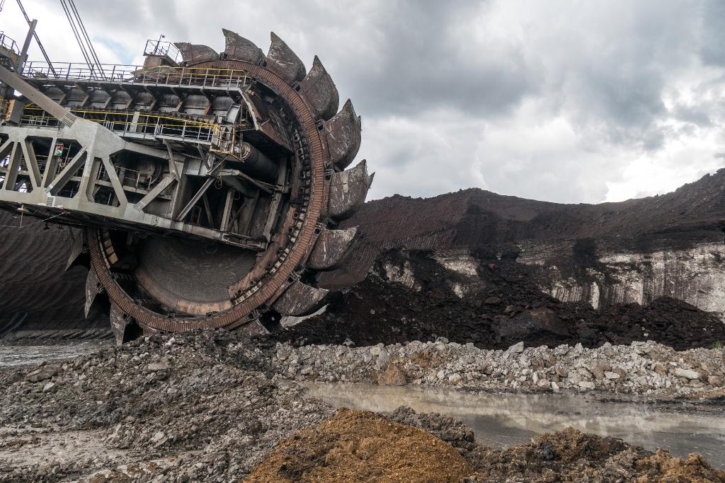 BRAUNKOHLE_SCHAUFELRAD_HAMBACH_JS081 Braunkohle Abraum Tagebau Hambach Rheinisches Braunkohlerevier Bagger Schaufelrad mit 21 Meter Durchmesser Braunkohle Erdreich, geologische Schichten in etwa 250m unter Meeresspiegel , de Tagebau ist Europas groesster, danach soll hier der zweitgroesste See in Deutschland entstehen |