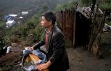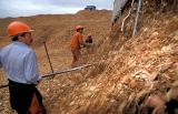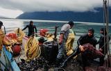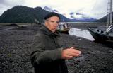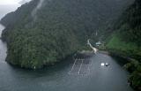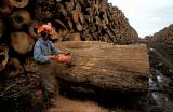 Chiles nasser Süden Douglas Tompkins Umweltschutz gegen Holzindustrie Fischfarmen Ausbeutung Naturressourcen Armut 1996 Douglas Tompkins.US-Amerikaner,Unternehmer, Millionär, Umweltschützer, April 1996 Puerto Montt, Carretera Sur, Reñihue,Parque Pumalín, Regenwald, Abholzung, Holzchips für Faxpapier, Lachsfarmen, Muschelfischer, die Armen verwerten die Holzabfälle Rinde zum Feuern und Wärmen