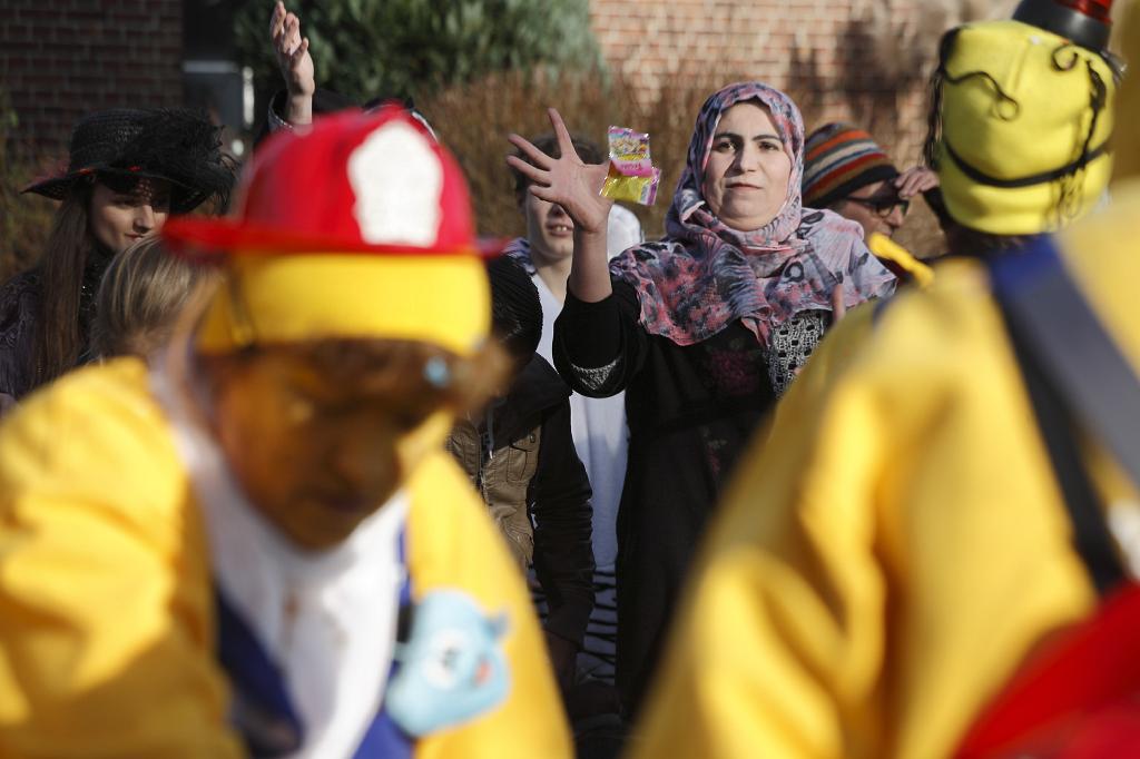 MUSLIMA_KARNEVAL_JS7407 angekommen im rheinischen Karneval - enjoying carnival parade collecting sweets and flowers |