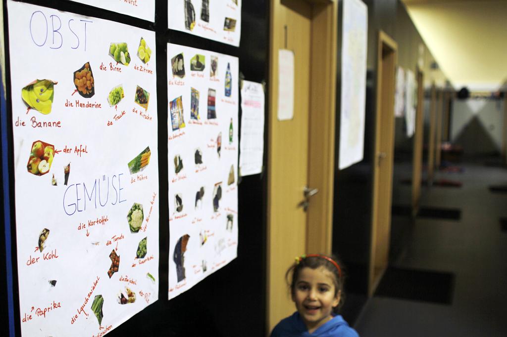 _MG_1632b in a former sportshall live about 50 people, basic text and visual information in several languages for the migrants |