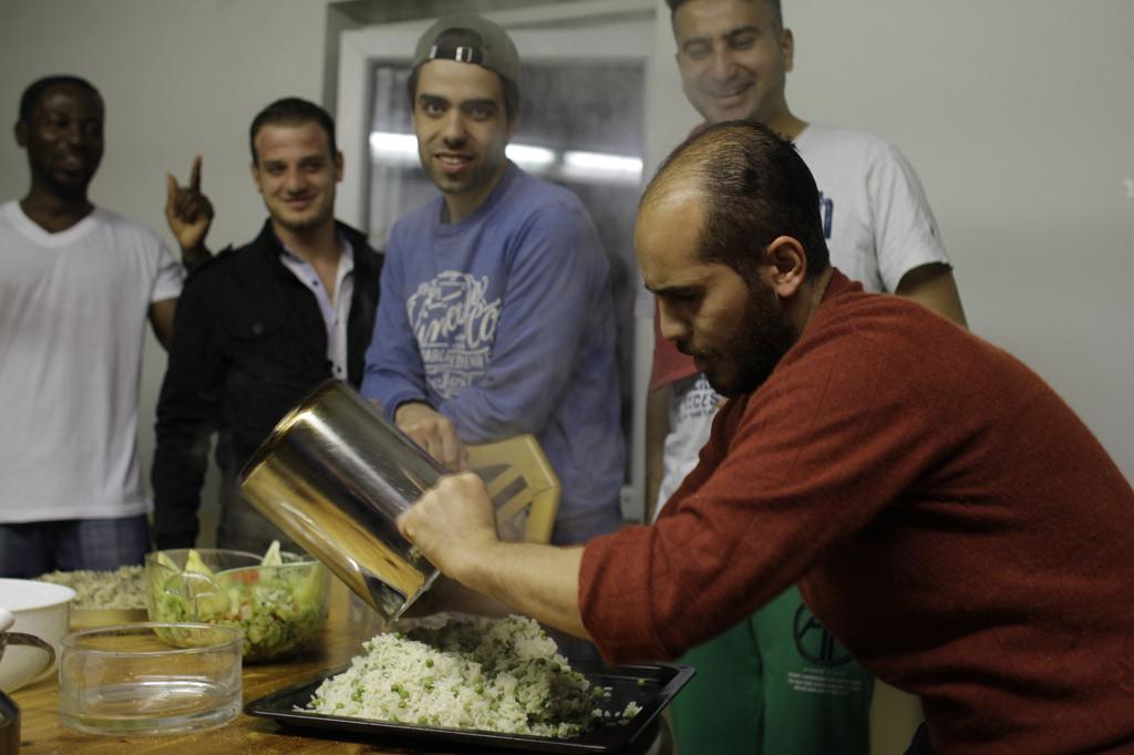 _MG_1701 young men from Syria and Ghana prepare traditional meal for meeting with village comunity |