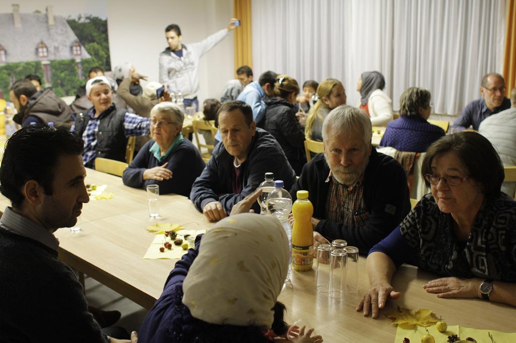_MG_1874 first meeting and sharing prepared meal of migrants and inhabitants in village Roggendorf |