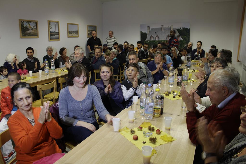 _MG_1893 first meeting and sharing prepared meal of migrants and inhabitants in village Roggendorf |
