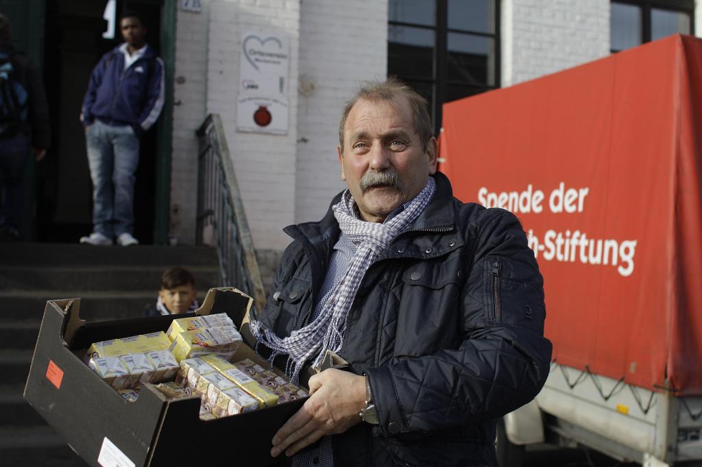 _MG_2046 speaker of the public food bank Wolfgang Weilerswist , also mayor of the town Mechernich, most of the visitors are migrants |