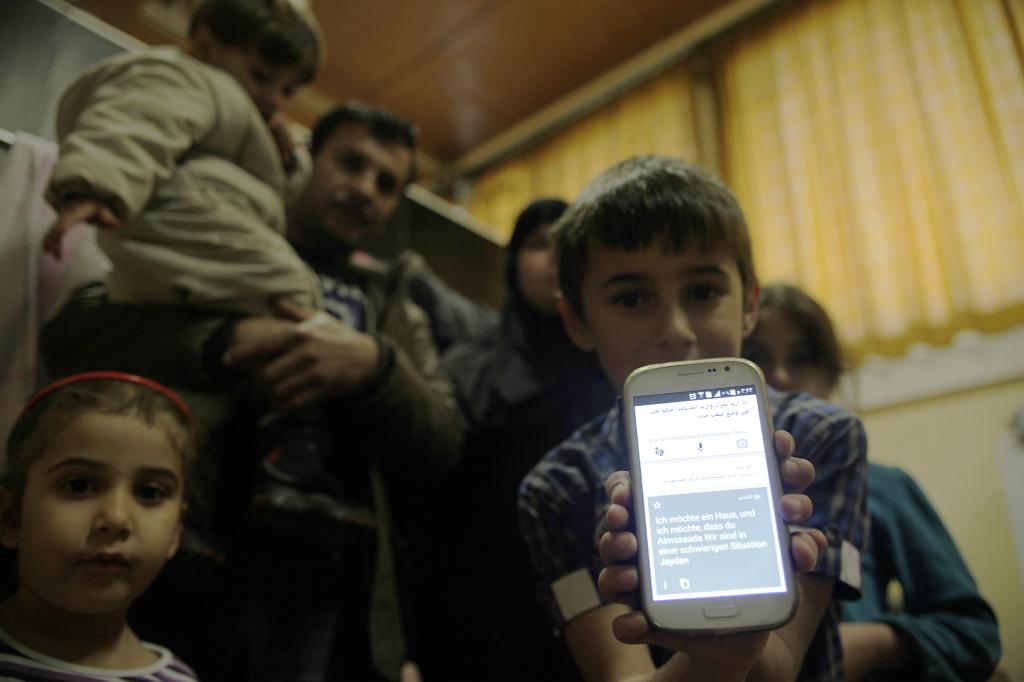 _MG_2528b family with 4 children from Aleppo, 19 days from Syria via Turkey, sea, Greece Croatia to Germany, woman uses translation app WE NEED OWN FLAT |